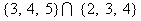 IN MATH: 1. n. with sets, the operation which creates a new set containing only those elements common to the original sets. 2. n. with curves, the point(s) which the graphs have in common.EX. The point (-3,4) is the intersection of x = -3 and y = (-2/3)x + 2.
