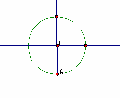Again you have an angle of 0° and a side with length 0. This time the vertical leg is 1, the same as the radius, so the sine is 1. |