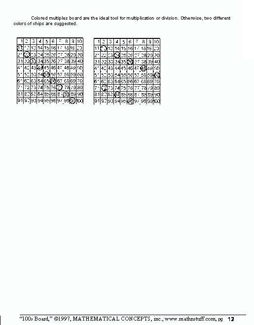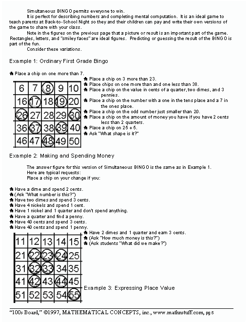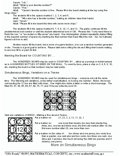 | "The Hundreds Board" from Math Games for Adult and Child ... Making the Board for COUNTING BY ... Simultaneous BINGO | 4 |
