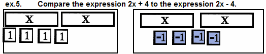 | Compare the expression 2x + 4 to the expression 2x - 4.