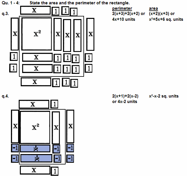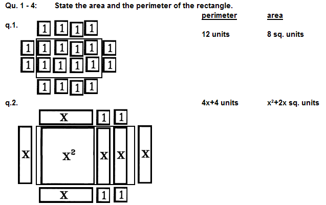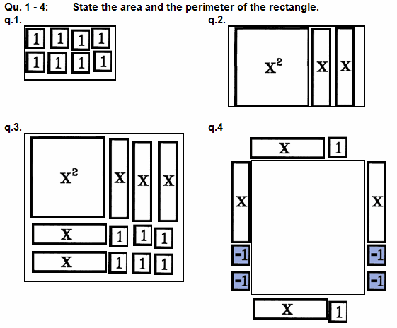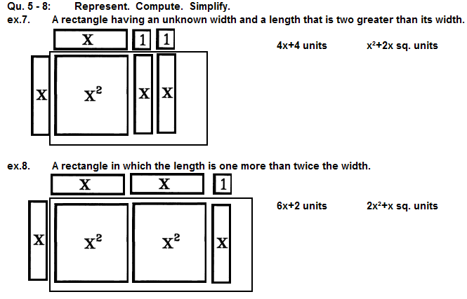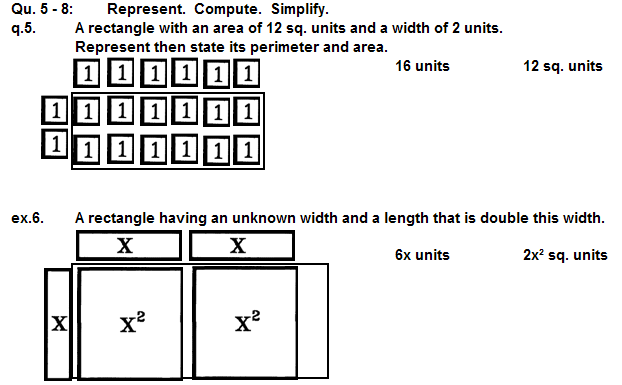 Qu. 5 - 8: | Represent, state, then simplify the perimeter and area. |