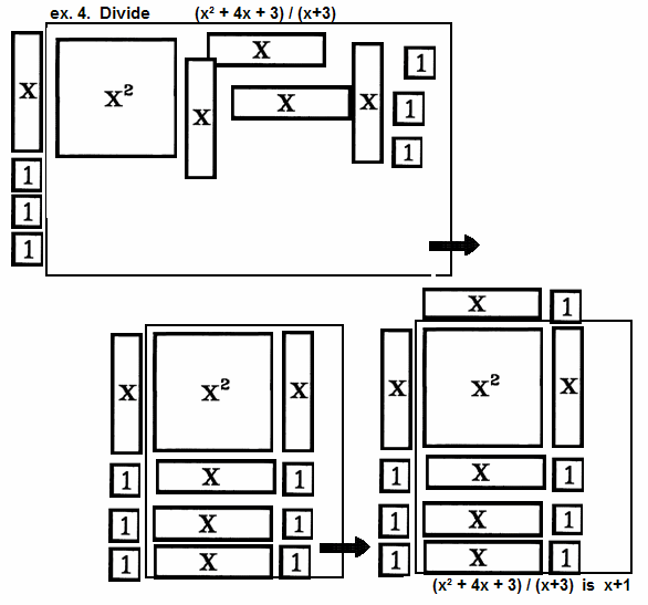 | ex. 4. | Divide (x² + 4x + 3) / (x+3)  |