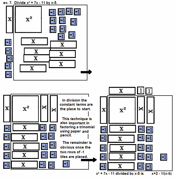 ex. 7. | Divide x² + 7x - 11 by x-5.  |