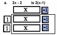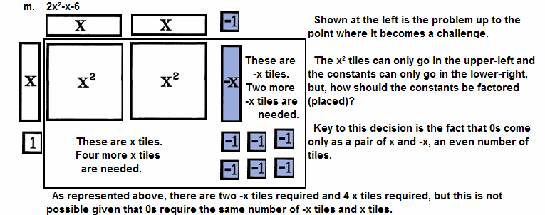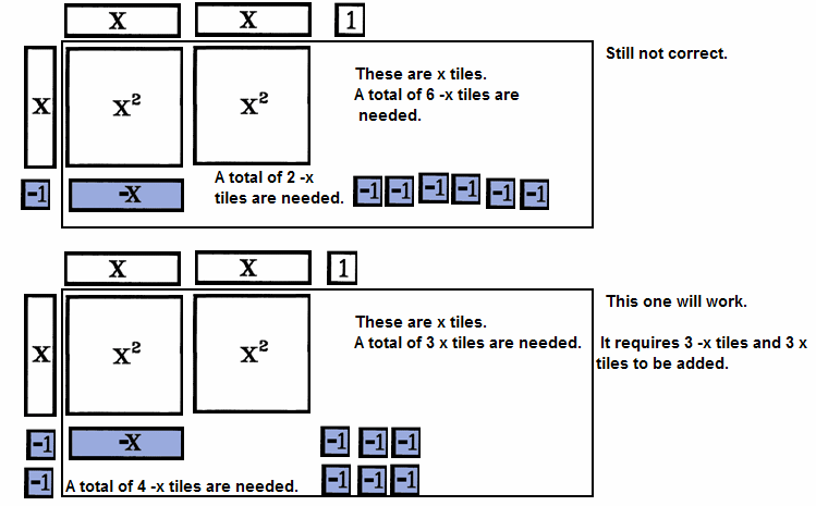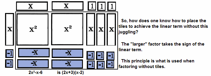 - 2. The sign of the linear term is negative so there are more -x tiles than x tiles.