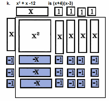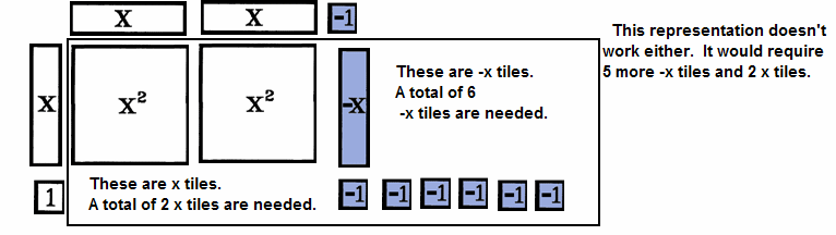 and this indicates the x tiles are all the same kind. The sign on the linear, x, term is negative indicating, in