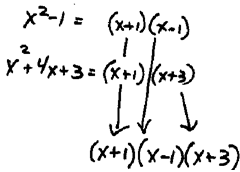 Finding the common denominator of the equation requires one to factor each denominator. The first two denominators were factored above. Factor the last denominator mentally. It is factored with Tiles below at the right.