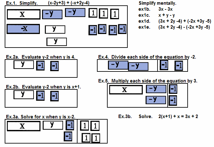 Term Tiles are NOT the best manipulative for solving systems (a set of equations solved together)! Use Graphing with Manipulatives and/or graphing calculators instead or in addition to Term Tiles. See "Options" for the best method. Linear systems involve many ideas. These include a solution with 2 values, multiple or no solutions, and multiple methods of solution. For a more complete review see "Use Linear Combination to Solve Systems of Equations and Inequalities," "Solve A Systems of Linear Equations by Substitution," and pages linked to them. In addition to the inability to easily find or represent solutions to all systems, solving systems with Term Tiles requires additional tiles. The y / -y tile must be used. ![]() Though Term Tiles are limited in solving linear systems, they are still valuable. Summarized below are the methods presented. The alternate version of linear combination is ideal for solutions which are fractions!