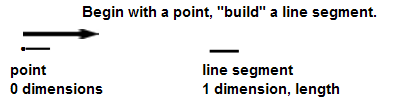 Drag the point a straight distance, a length, so as to leave a trail on the paper. That trail is a symbolic representation of a line segment - a piece of a line. It really has no width, no thickness. It has 1 dimension. It has length.
