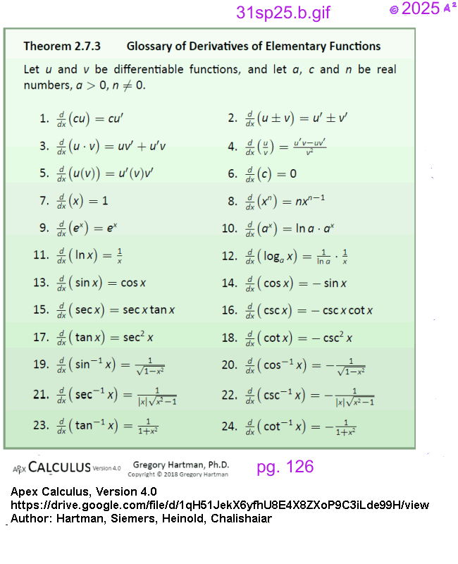 - W9/24, Th9/25 pg. 7- Basic Differentiation Rules (2.3), pg. 82