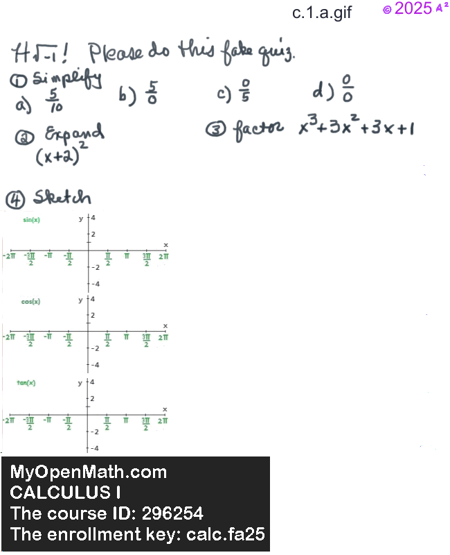 - F10/24 pg. 13.5 - Q4 Derivatives of Inverse Functions, due at 11:59 PM