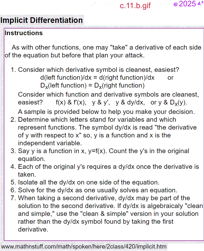 - Implicit functions are usually stated as an equation in which one cannot solve for one