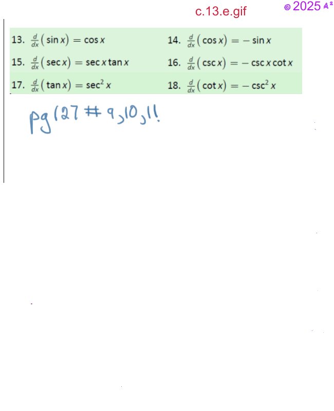 - to take the derivative of Arcfunctions, derive the derivative formula. (the meat of today's content)