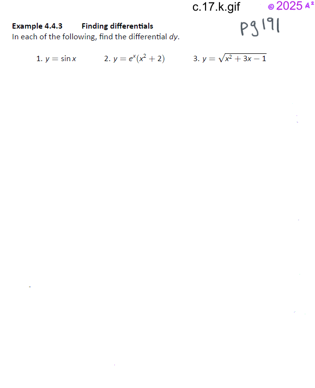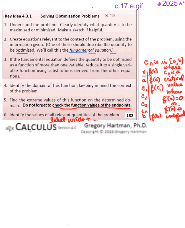 mathnstuff.com/math/calc/MAT131fa25/c.17.htm © 7/21/2025, A2, Agnes Azzolino Optimization and Differentials (4.3-4.4, pg. 181, 188) | ![]() ![]() |