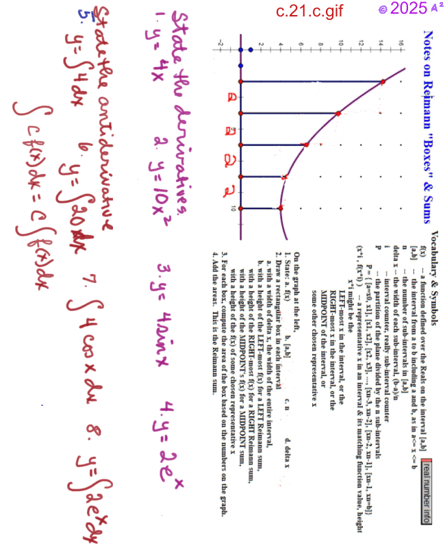 Reimann Boxes & Sums, and Integration web page