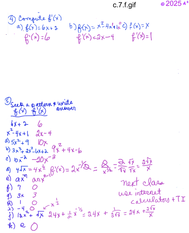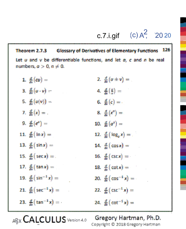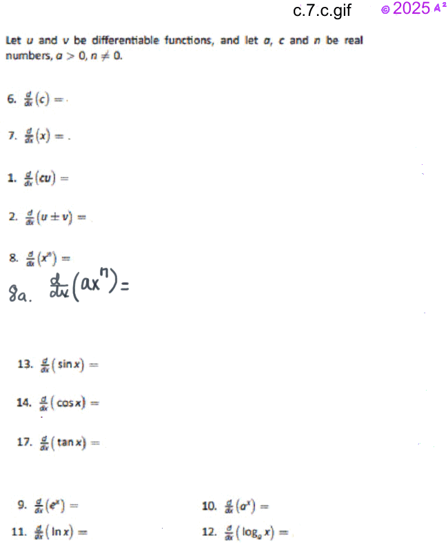 - Today is is your task to learn basic derivatives like times tables -- by memory,