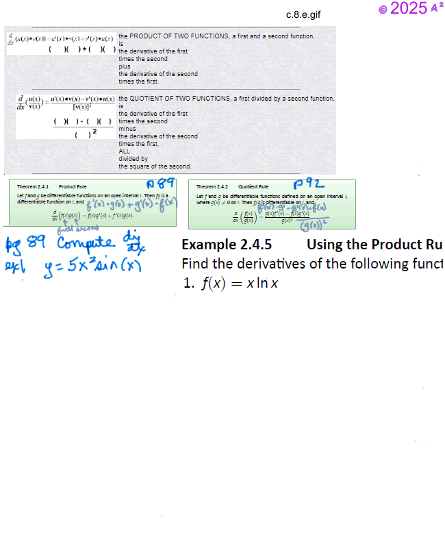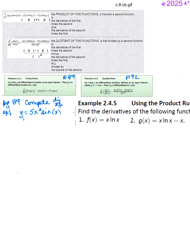 - So the derivative of the product sin(x)ex may be sung (as in the