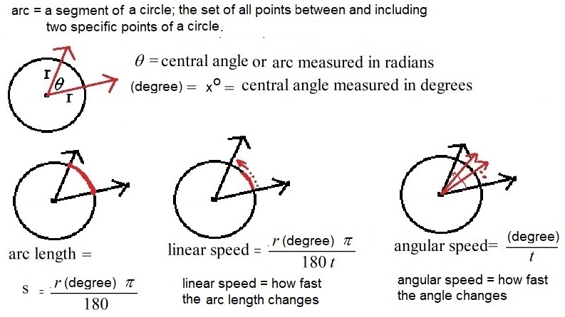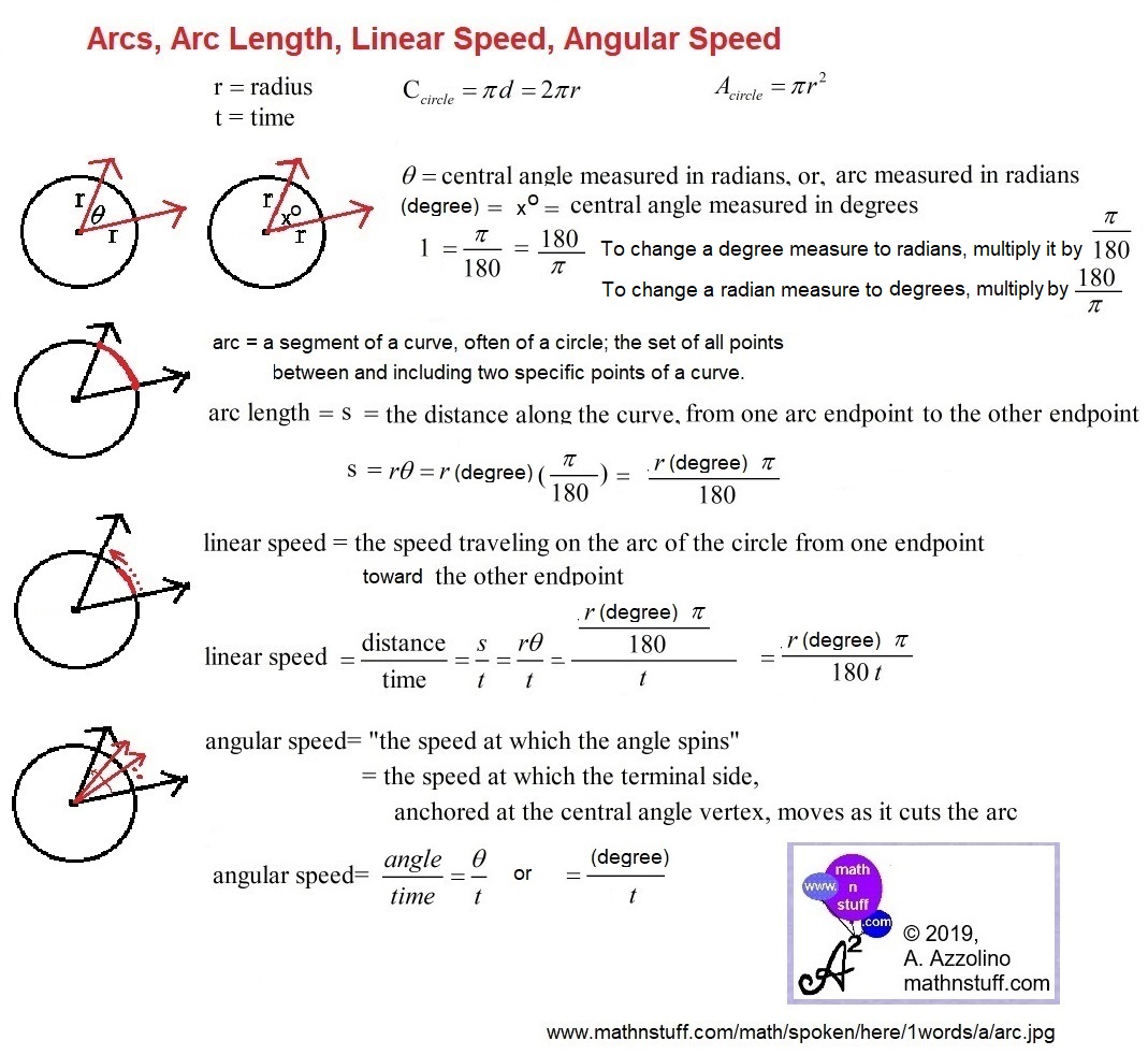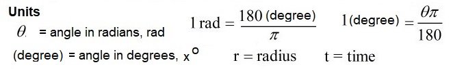radians make these formulas MUCH easier and clearer, this part of the page uses only degrees to measure angles and builds the conversion from degree to radian into the formulas. In the list of units shown below and the other images, the conversion formula is visible.