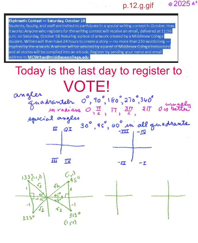 mathnstuff.com/math/precalc/MAT129fa25/p.12.htm © 2025 A2, Agnes Azzolino Angles and their measures, Text 7.1 , PG. 576 |