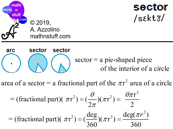 For the full story, see Arc Formulas and Rational, and Sector Formulas and Rational. Click on the image below to see an enlargement of the formulas that are used here.