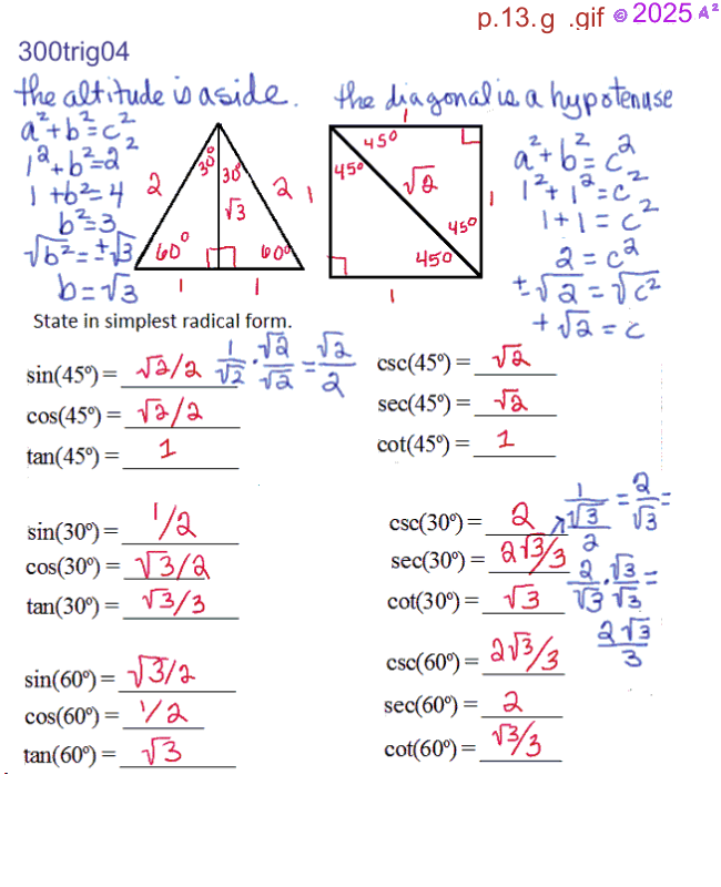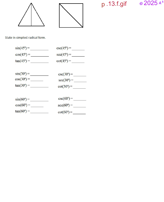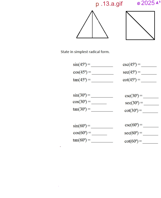 p.13.g.gif, trig functions of he 30s,45s, 60s ANSWERS