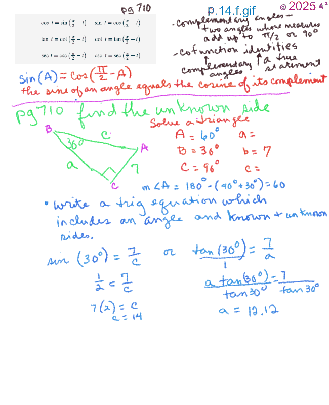 T10/21, W10/22 | is 14 | Trigonometric Functions of any angle, Textbook 7.3 , PG. 604 |