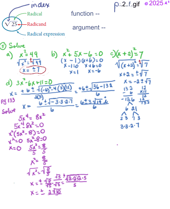 argument 2.5 - Quadratic Equations, pg. 119, Learning Objectives * Solve quadratic equations by factoring. * Solve quadratic equations by the square root property. * Solve quadratic equations by completing the square. * Solve quadratic equations by using the quadratic formula. 2.6 -Other Types of Equations -- Solving Equations Algebraically, pg. 131, Learning Objectives * Solve equations involving rational exponents. * Solve equations using factoring. * Solve radical equations. * Solve absolute value equations. * Solve other types of equations.