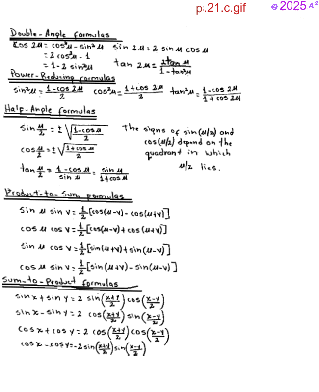 Sum and Difference and Multiple-Angle Formulas, Text 9.2,9.3,9.4, PG. 706, 720, 732