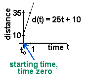 -     The initial distance is 10 cm and the object travels 25 cm/sec.