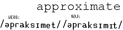 IN MATH: 1. v. estimate. EX. Approximate the value of the vase. 2. adj. close to the amount in question. EX. The approximate value of the vase is $9.00.