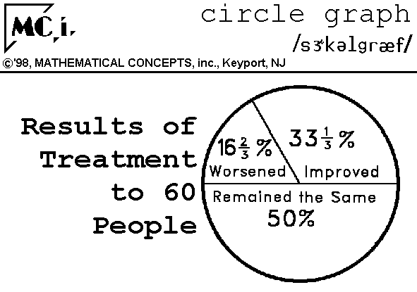 IN MATH: 1. n. a pictorial way of displaying how an entire thing, represented by the circle's interior, is distributed. EX. Linda used a circle graph to show how revenues were de rived.