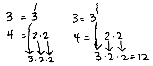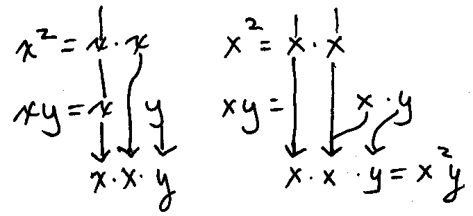 In the examples below, the lines starting at the top of the example show the first step in the work.