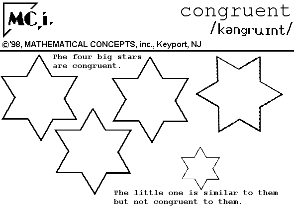 IN MATH: 1. adj. exactly the same in size and shape. EX. Are the triangles congruent?