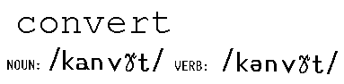 IN MATH: 1. v. to rewrite an expression using a different notation or using a different unit of measure. EX. Convert the decimal number to a fraction: 0.75.