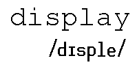 IN ENGLISH: 1. v. to show. 2. n. a exhibit. EX. The store window had a nice display for Back-to-School.