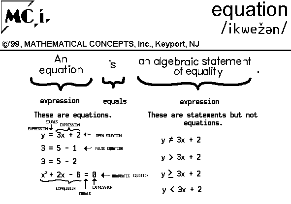 This is a page from the dictionary MATH SPOKEN HERE!, published in 1995 by MATHEMATICAL CONCEPTS, inc., ISBN: 0-9623593-5-1. You are hereby granted permission to make ONE printed copy of this page and its picture(s) for your PERSONAL and not-for-profit use.
