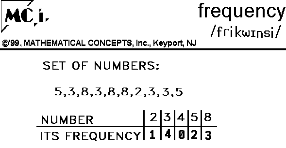 85 First Street, Keyport, NJ 07735-1503 callus@mathnstuff.com     (732) 739-3951 © 1999, http://www.mathnstuff.com/math/spoken/here/1words/f/f18.htm             Revised: 4/5/99 |