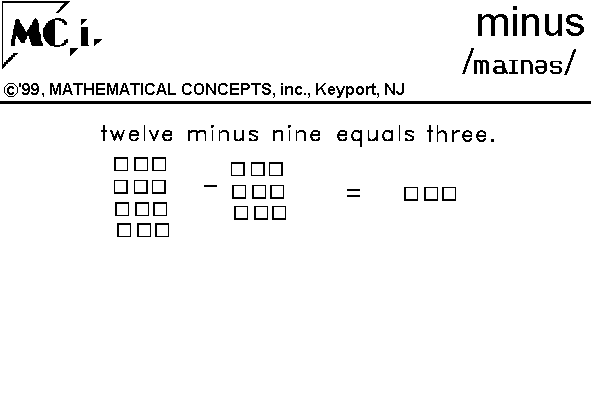This is a page from the dictionary MATH SPOKEN HERE!, published in 1995 by MATHEMATICAL CONCEPTS, inc., ISBN: 0-9623593-5-1. You are hereby granted permission to make ONE printed copy of this page and its picture(s) for your PERSONAL and not-for-profit use.
