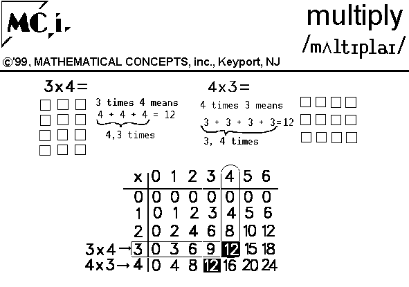 IN MATH: 1. v. to compute a product; to perform a multiplication. See MULTIPLICATION.