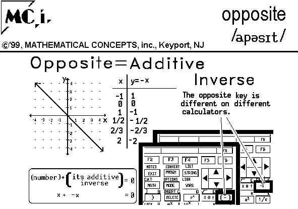 | IN MATH: 1. n. | ADDITIVE INVERSE. |