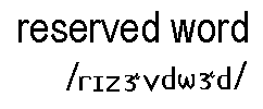 IN MATH: 1. n. a word or symbol whose meaning or used is predefined or reserved. EX. On the calculator, ANS is a reserved word meaning answer. ENTRY is a reserved word meaning the expression or command last on the command or entry line.