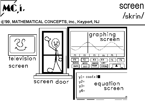 This is a page from the dictionary MATH SPOKEN HERE!, published in 1995 by MATHEMATICAL CONCEPTS, inc., ISBN: 0-9623593-5-1. You are hereby granted permission to make ONE printed copy of this page and its picture(s) for your PERSONAL and not-for-profit use.