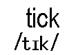 IN ENGLISH: 1. n. an insect. EX. The deer tick is very tiny but can cause a human great trouble. 2. n. a slight mark in printing. EX. Quotes have two ticks: ". An apostrophy is one tick: '. EX. The tick mark is often used to set off a character string or message in calculator or computer programs. EX. In measurement, a tick stands for foot or feet, so, 9' by 12' means nine feet by 12 feet.