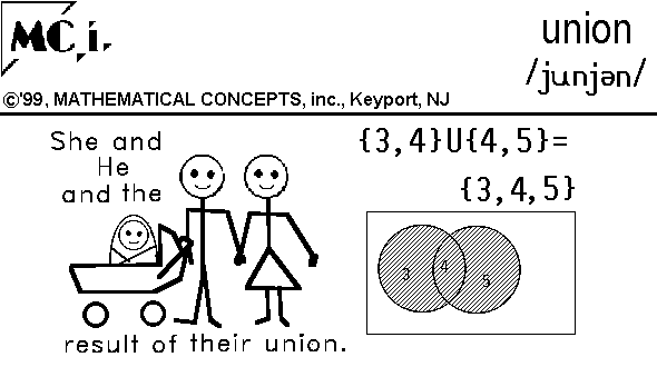 of the two sets which were united. EX. The union of set A, {2, 3, 4, 5}, and set B,