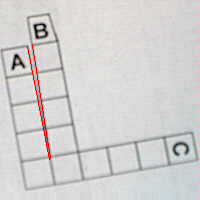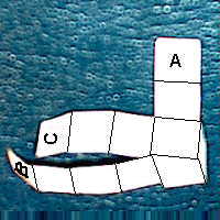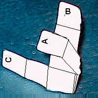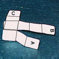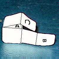 2nd:     Cut out the figure so that the slit between strip A and strip B extends