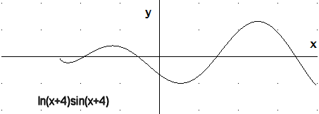In this second compostion, the height will continue to grow because the natural log function, seen as ln(x+4), continues to grow and here multiplies the height of the sine. The curve is shifted to the left by the linear function x+4 seen as the arguments of the natural log and the sine. |