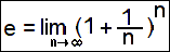 - It is defined, by Jacob Bernoulli in the 1600s, to be the limit, as n goes to infinity, of the nth power of the sum of 1 and the reciprocal of n.