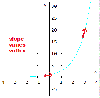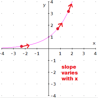 | Slope Function, m, f'(x), dy/dx: m = ex