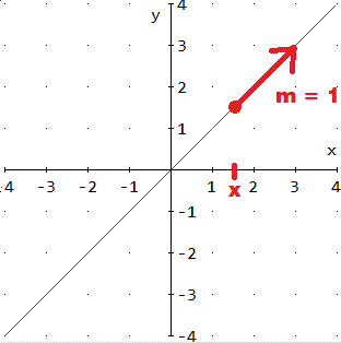 | Slope Function, m, f'(x), dy/dx: m = 1