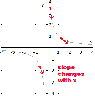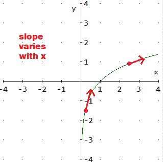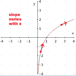 | Slope Function, m, f'(x), dy/dx: m = 1/x