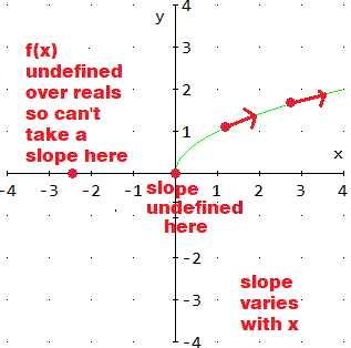| Slope Function, m, f'(x), dy/dx: m = 1/(2